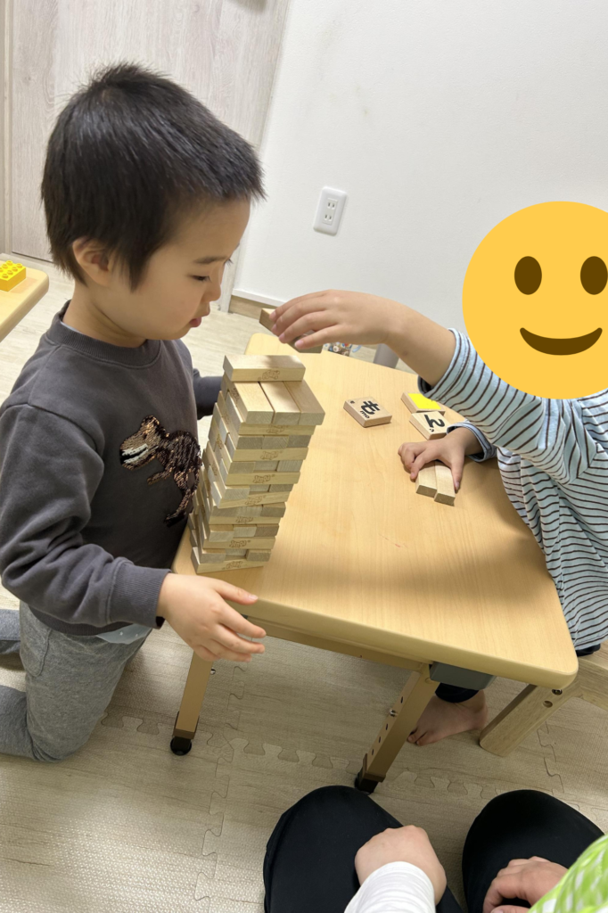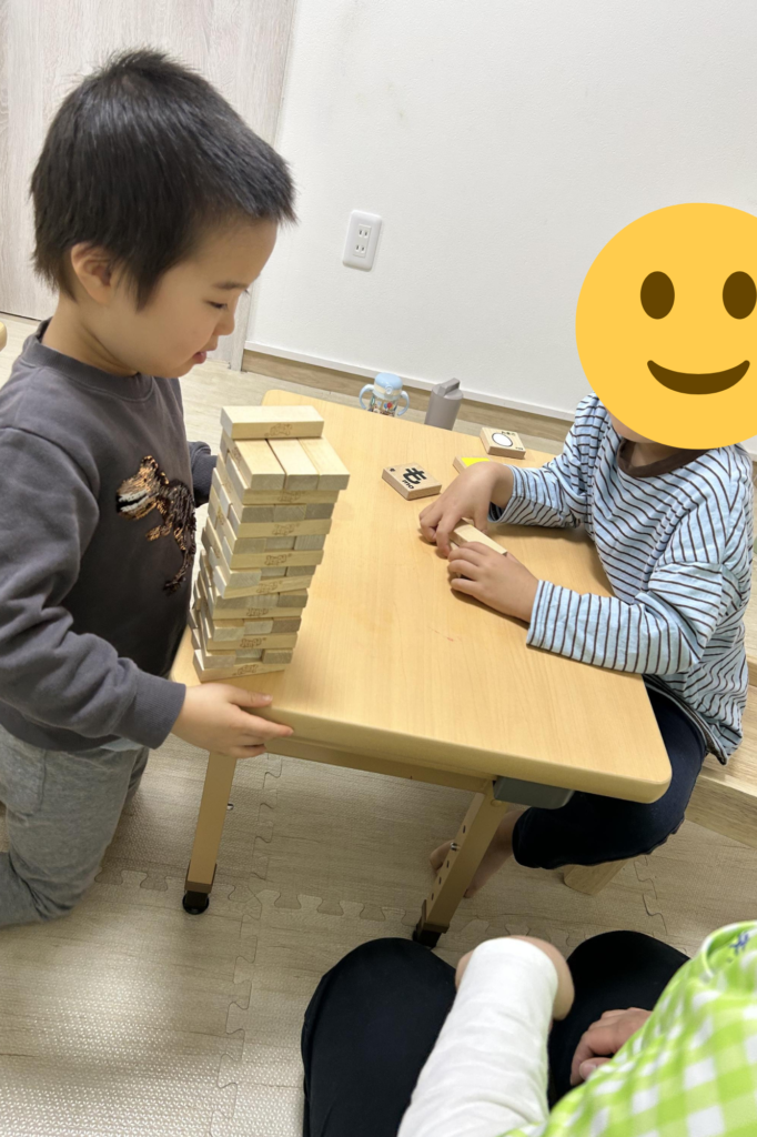 ジェンガを一緒に積み上げる遊びに🌟